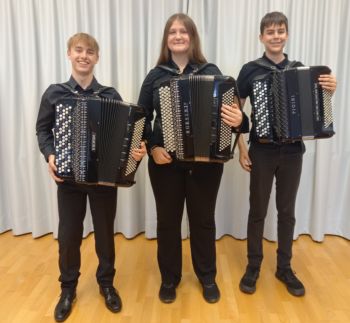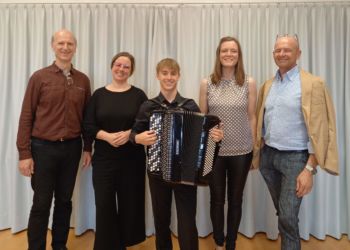 Im Beisein von seinem Lehrer Roman Prüller, Musikschuldirektor Dietmar Winkler und Lehrerin für Akkordeon Ariane Buck, die zusammen mit der Direktorin der Landesmusikschule Grein, Manuela Kloibmüller die Prüfungskommission bildeten, lieferte Jakob eine wahrlich fantastische Darbietung ab. Mit dabei waren auch Joana Frischer und Michael Gruber, die Jakob als Akkordeon-Ensemble bei seiner Prüfung unterstützten.