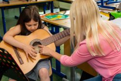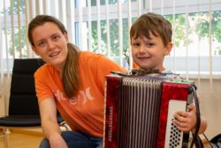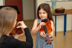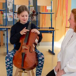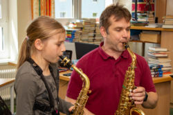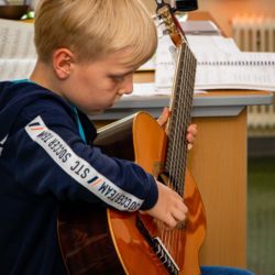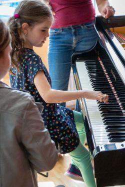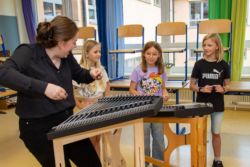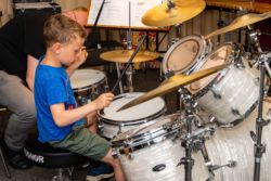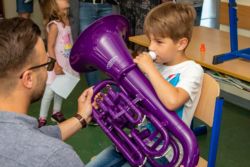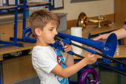 Von der Blockflöte bis zur Querflöte, vom Hackbrett bis zum Drumset konnten die Kinder alle angebotenen Instrumente und auch die Kunstfächer aus nächster Nähe kennenlernen und vielfach auch selbst probieren.